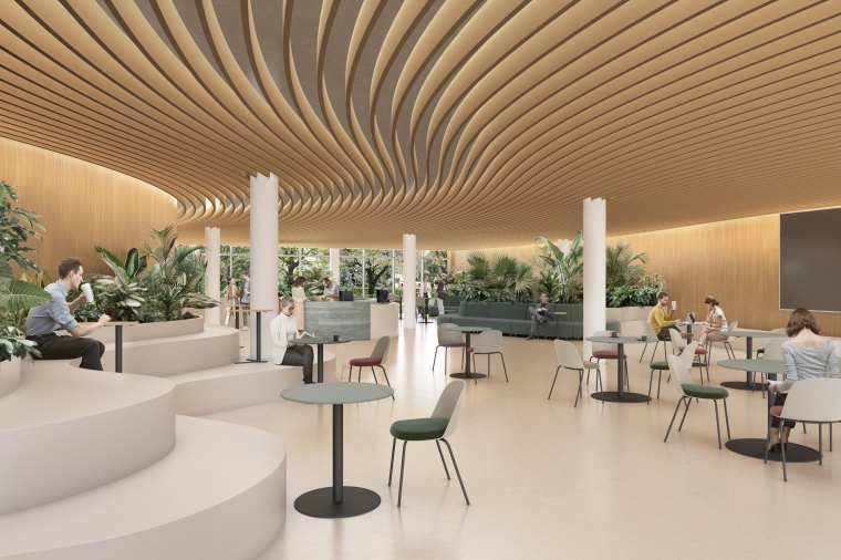 Conçue pour bénéficier au maximum de la lumière naturelle mais aussi pour favoriser les échanges entre collaborateurs, la nouvelle manufacture permet à Audemars Piguet d’offrir un environnement de travail agréable à ses équipes et d’assurer leur bien-être et leur confort. Tous les espaces de production sont entièrement vitrés et s’organisent autour de la cour végétalisée avec dans son prolongement la piazza du nouveau bâtiment. Les collaborateurs bénéficient d’un accès à la cour via la piazza et peuvent également profiter de deux grandes terrasses situées au premier étage. Ces espaces extérieurs s’ajoutent aux nombreux lieux de rencontre intérieurs qui ont été prévus afin de favoriser la convivialité et la communication entre collaborateurs issus de différents départements. (source: FdMP architectes)