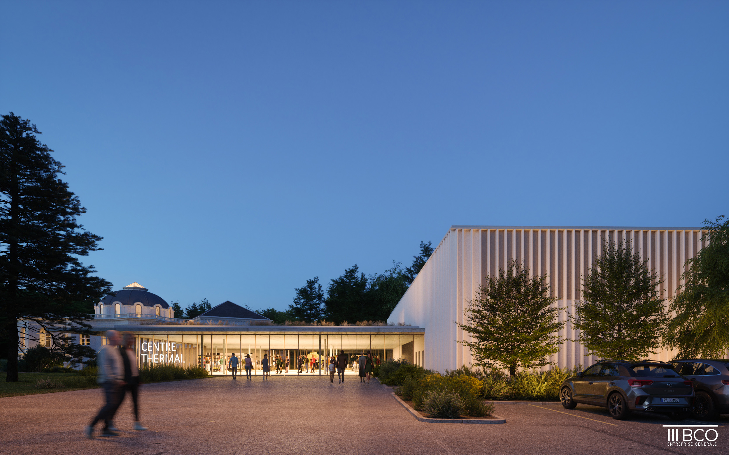 La première pierre symbolique du nouveau Centre Thermal a été posée en août 2023. Cette cérémonie lance la démolition du bâtiment existant et marque l’ouverture d’une nouvelle page dans l’histoire de l’établissement.