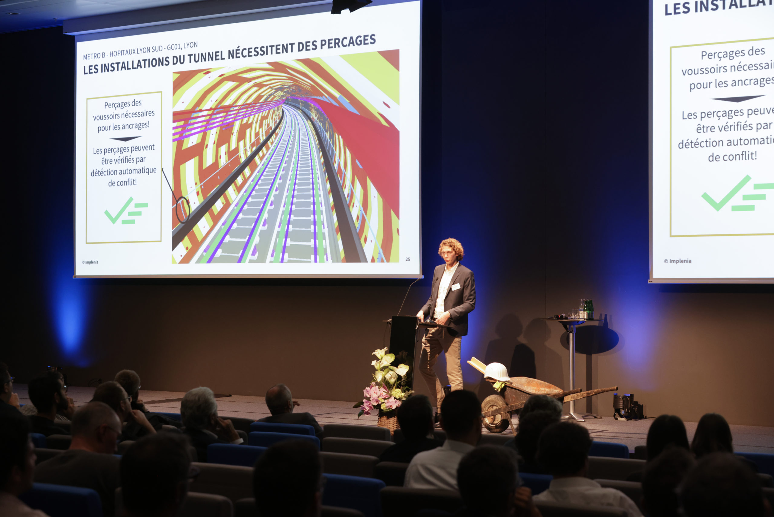Felix Stauch, Head of BIM Civil au sein d’Implenia, a ensuite exposé les défis liés à la creuse d’un tunnel pour l’extension de la ligne B du métro de Lyon. Des jumeaux numériques ont été utilisés dans ce contexte pour optimiser l’excavation, prévisualiser les étapes de tirs et les forages pour ainsi éviter la surexcavation.