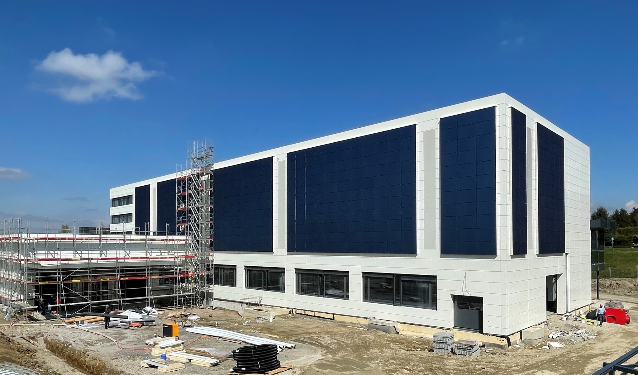 La future concession automobile Dimab à Rossens (FR) innove grâce à son étroite collaboration avec Morand Constructions Métalliques. Constituée d’acier XCarb® 100 % recyclé produit avec 100 % d’électricité renouvelable, sa charpente métallique est décarbonée et ses façades ont été spécialement conçues pour accrocher 680 panneaux solaires colorés Kromatix.