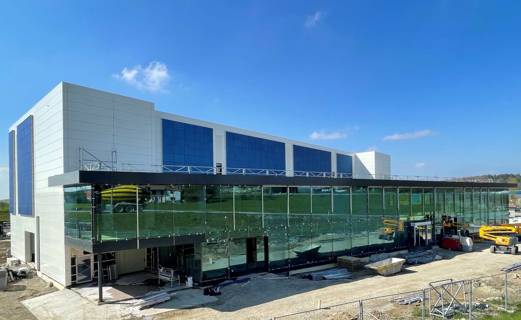 Mis à part ces technologies nouvelles, la construction de ce bâtiment fait la part belle aux entreprises fribourgeoises et aux cir- cuits courts. L’usine de Kromatix est installée à Romont, celle de Morand Constructions Métalliques à Enney. Toutes deux sont situées à une vingtaine de kilomètres à peine de Rossens.