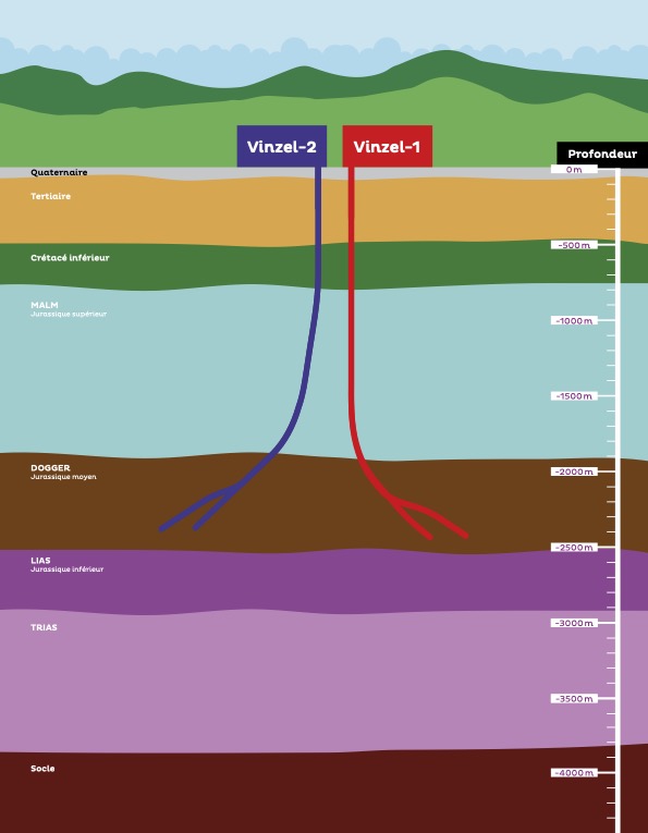 Le projet EnergeÔ Vinzel, porté par quatre partenaires énergéticiens engagés de la région, s’inscrit dans la famille des projets de géothermie de moyenne profondeur, contrairement aux projets dits de géothermie profonde, similaires à ceux réalisés à Bâle et à St-Gall. Dans la région de La Côte, le Dogger, une couche géologique calcaire datant d’environ 175 millions d’années, est naturellement fracturée. Ce projet ne nécessite donc pas de méthodes de fracturation hydraulique artificielles du massif rocheux.