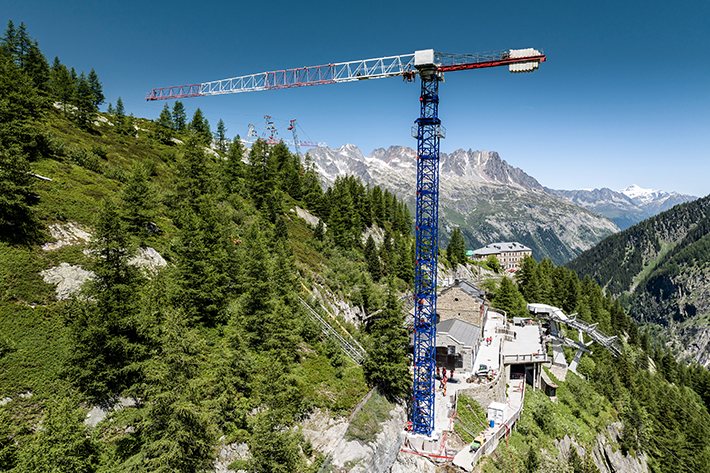 Le Mont-Blanc, plus haut sommet d’Europe fort de ses 4809 mètres d’altitude, continue de fasciner. C’est également un lieu unique pour les scientifiques. Un nouveau centre d’interprétation des glaciers et du climat, incluant un nouveau téléphérique, est actuellement en construction sur le plus grand glacier de France, la « Mer de Glace ». Le réaménagement de la station du Montenvers doit permettre de sensibiliser encore mieux les élèves, les touristes et les habitants aux effets du changement climatique. Parallèlement, l’accès à la haute montagne devrait être facilité car le nouveau téléphérique se rapprochera du glacier. Une grue 150 EC-B 8 Liebherr, dont le montage a été effectué à l’aide d’un hélicoptère, joue un rôle déterminant dans cette construction.