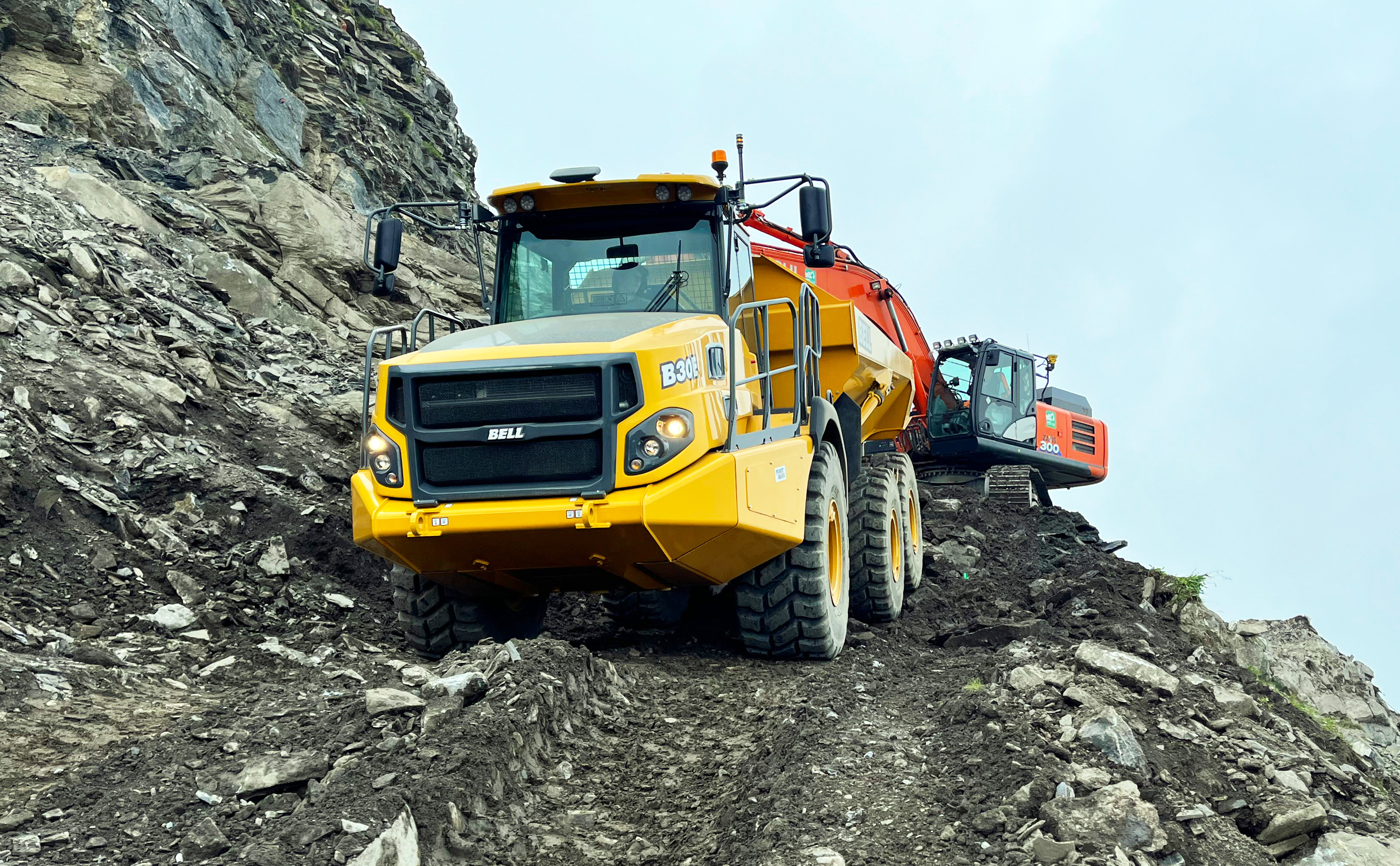 L’entreprise Raymond Rithner SA à Monthey effectue les travaux de montagne sous la direction du bureau d’ingénieurs Petignat & Cordoba Ingénieurs Conseils SA. Nicolas Lopreti, responsable «Technique et Travaux» chez Raymond Rithner SA, explique que quatre pelles sur chenilles Hitachi, un tombereau Bell B30E avec une charge utile de 28 t, un rouleau de terrassement Bomag BW 217 ainsi que différents marteaux hydrauliques Montabert V45 et V55 sont utilisés pour réaliser ces travaux.