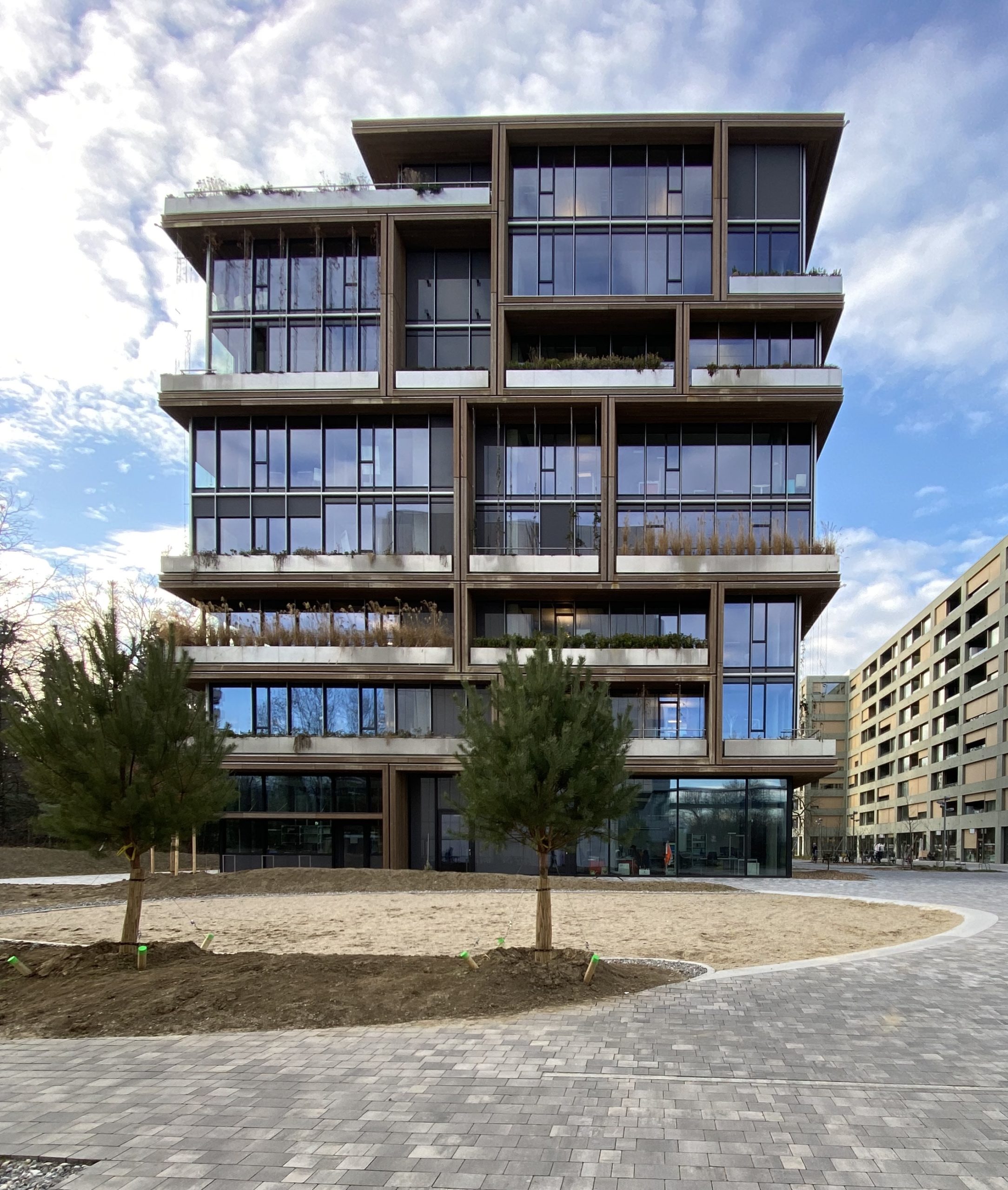 Dans quelques mois, le raccordement au réseau GeniLac assurera le chauffage et le rafraîchissement de l’immeuble. Pour l’heure, un raccordement CAD provisoire et des panneaux photovoltaïques assurent l’alimentation énergétique.