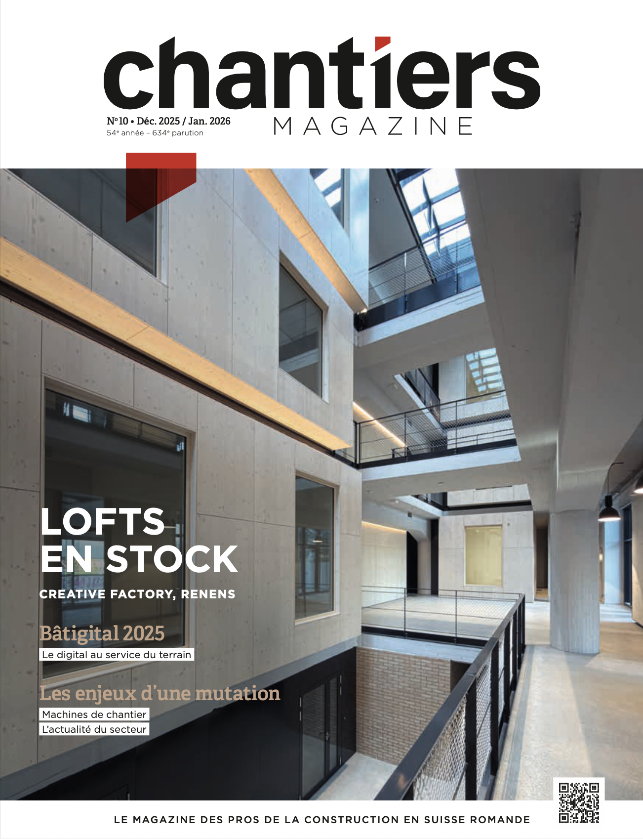 Ce numéro de décembre 2025 de Chantiers magazine est la 634è parution de ce titre désormais historique qu’il nous est donné de perpétuer. Nous abordons la 55è année d’existence du magazine avec confiance. Le secteur de la construction a déjà traversé de nombreuses périodes tourmentées, des crises et des mutations. L’envie et la nécessité de faire, d’innover et de résoudre des problèmes, avec passion, volonté et savoir-faire, lui ont toujours permis d’aller de l’avant avec force et de confirmer sont rôle central dans l’économie et le développement de la Suisse. Chantiers magazine va continuer de témoigner de ce dynamisme, de mettre en valeur les métiers et les savoirs et pourquoi pas, d’inspirer les pros de notre région.