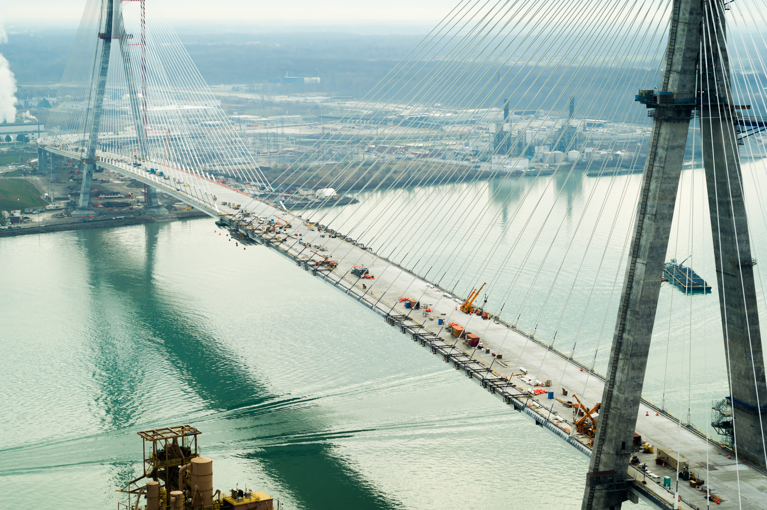 La construction du pont international Gordie-Howe, qui relie Windsor, au Canada, à Detroit, aux États-Unis, représente un projet emblématique à la fois sur le plan technique et économique. Sa mise en service est prévue en septembre 2025. Le pont est une entreprise générationnelle qui aspire à transformer la dynamique du transport transfrontalier entre ces deux régions vitales.