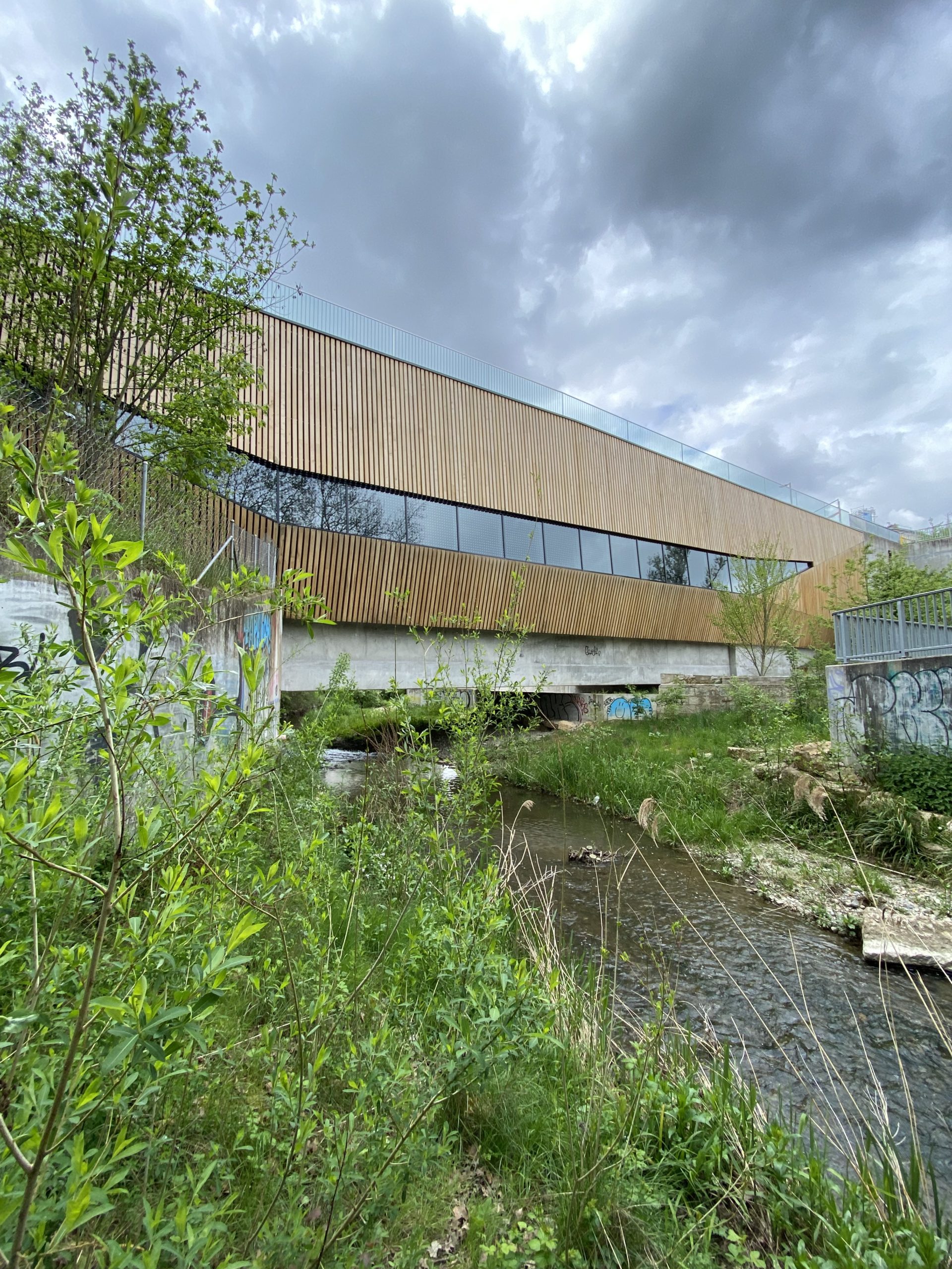 Afin d’éliminer les nuisances sonores dues aux passages des trains, le pont sur la Seymaz à Chêne-Bourg, a été fermé et habillé d’une façade. Outre ses qualités techniques, elle assure une intégration douce dans le milieu naturel avoisinant.