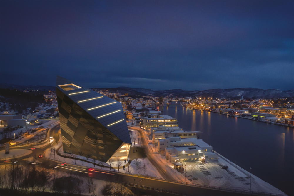 Pour les architectes de Snøhetta, l’initiative Powerhouse est l’occasion d’explorer ce qui est aujourd’hui réalisable en termes de bâtiments économes en énergie et en ressources. Après les projets Powerhouse Kjørbo, Powerhouse Montessori et Powerhouse Brattørkaia, c’est dans la petite ville de Porsgrunn que se construit le quatrième bâtiment à énergie positive, développé conjointement par les partenaires du projet R8 Property, Skanska et Asplan Viak. Le concept prévoit de produire plus d’énergie que ce qui est consommé sur l’ensemble du cycle de vie du bâtiment, estimé à 60 ans. Une démarche qui inclut l’énergie grise, déjà consommée par l’immeuble durant la construction, les matériaux utilisés, ainsi que l’énergie nécessaire pour la démolition future. Le chemin vers cet équilibre: l’édifice est une centrale électrique à lui seul. Grâce à des solutions intérieures standardisées et à des espaces de travail en commun, les locataires peuvent adapter leurs bureaux en fonction de leurs besoins, ce qui leur offre une flexibilité indispensable dans un contexte mondial où les solutions de travail à distance sont de plus en plus demandées.