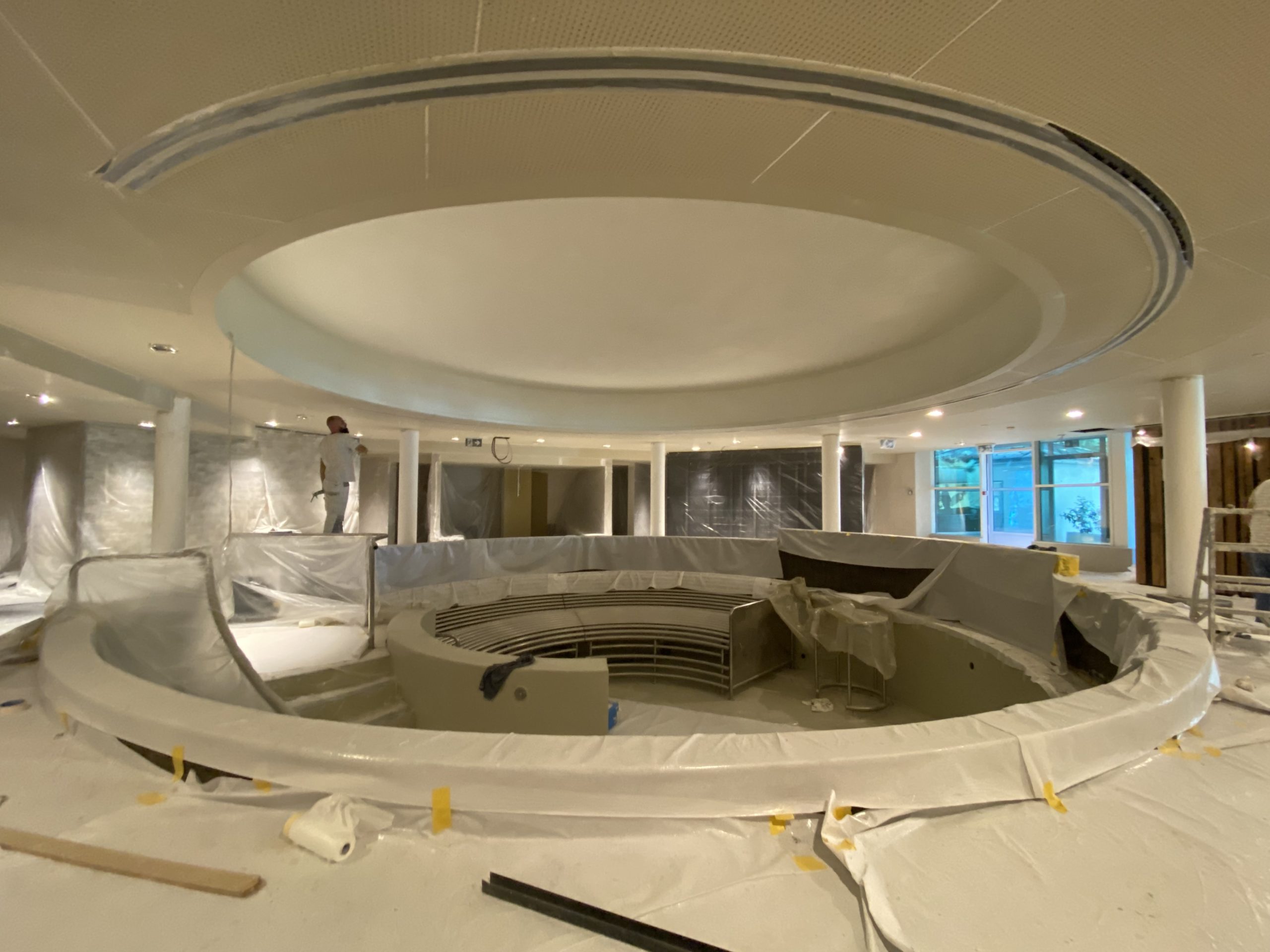 Chaque étape et chaque vérification ajoutent leur lot d’imprévus et de complexité. Cinq mois seulement avant la date de réouverture, un examen des toitures laisse apparaître diverses fuites. Ainsi, la toiture du bassin intérieur, celle au-dessus du fitness et une partie de celle du bâtiment principal ont dû être refaites.