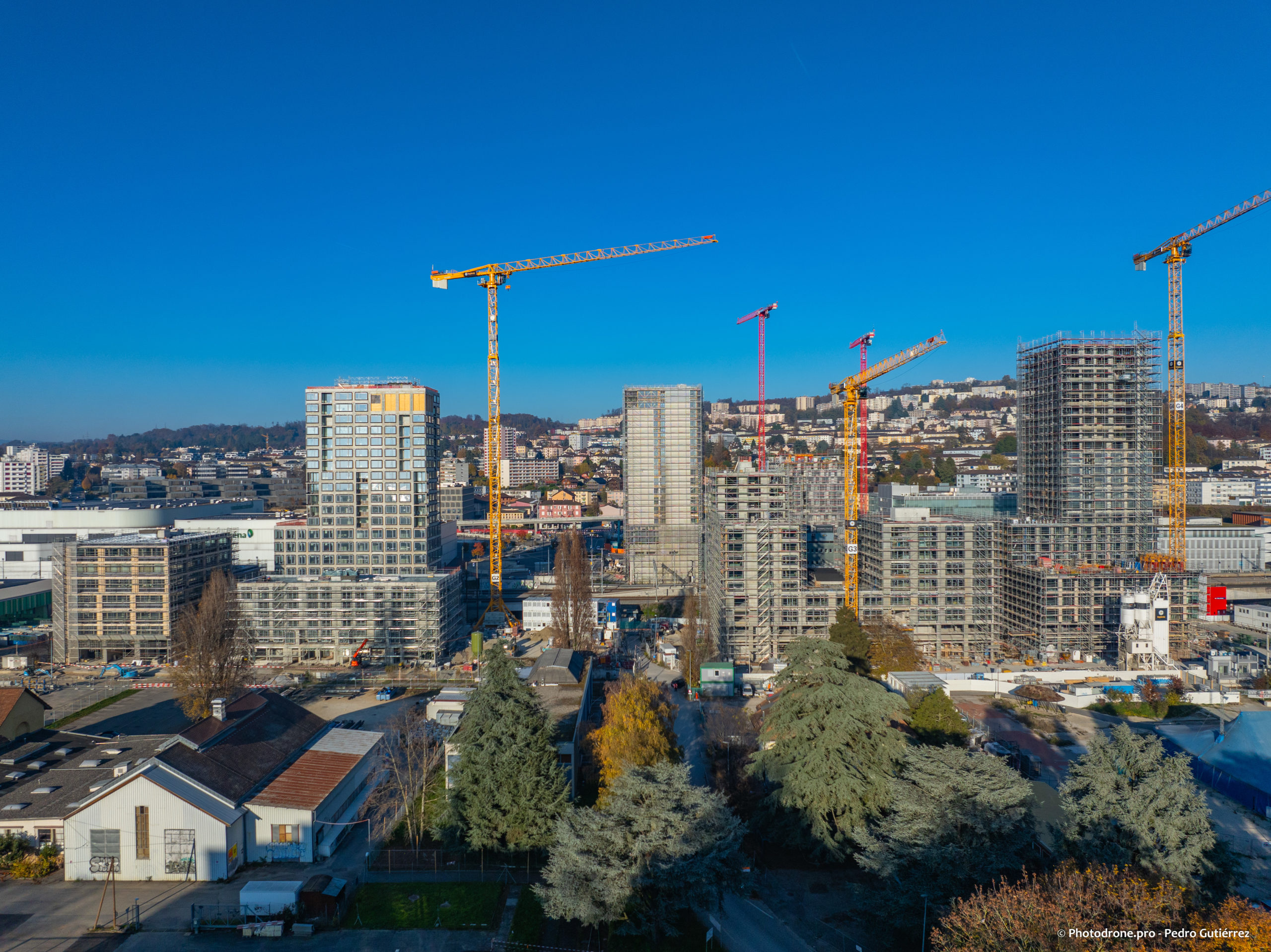 Le concours d’architecture distinguait deux lots, attribués à deux bureaux distincts. L’aire A (bâtiments A1, A2 et A3) a été attribuée au bureau Aeby Perneger & Associés SA à Lausanne. Le bureau Pont12 de Chavannes-près-Renens est, quant à lui, lauréat de l’aire B (bâtiments B1, B2).