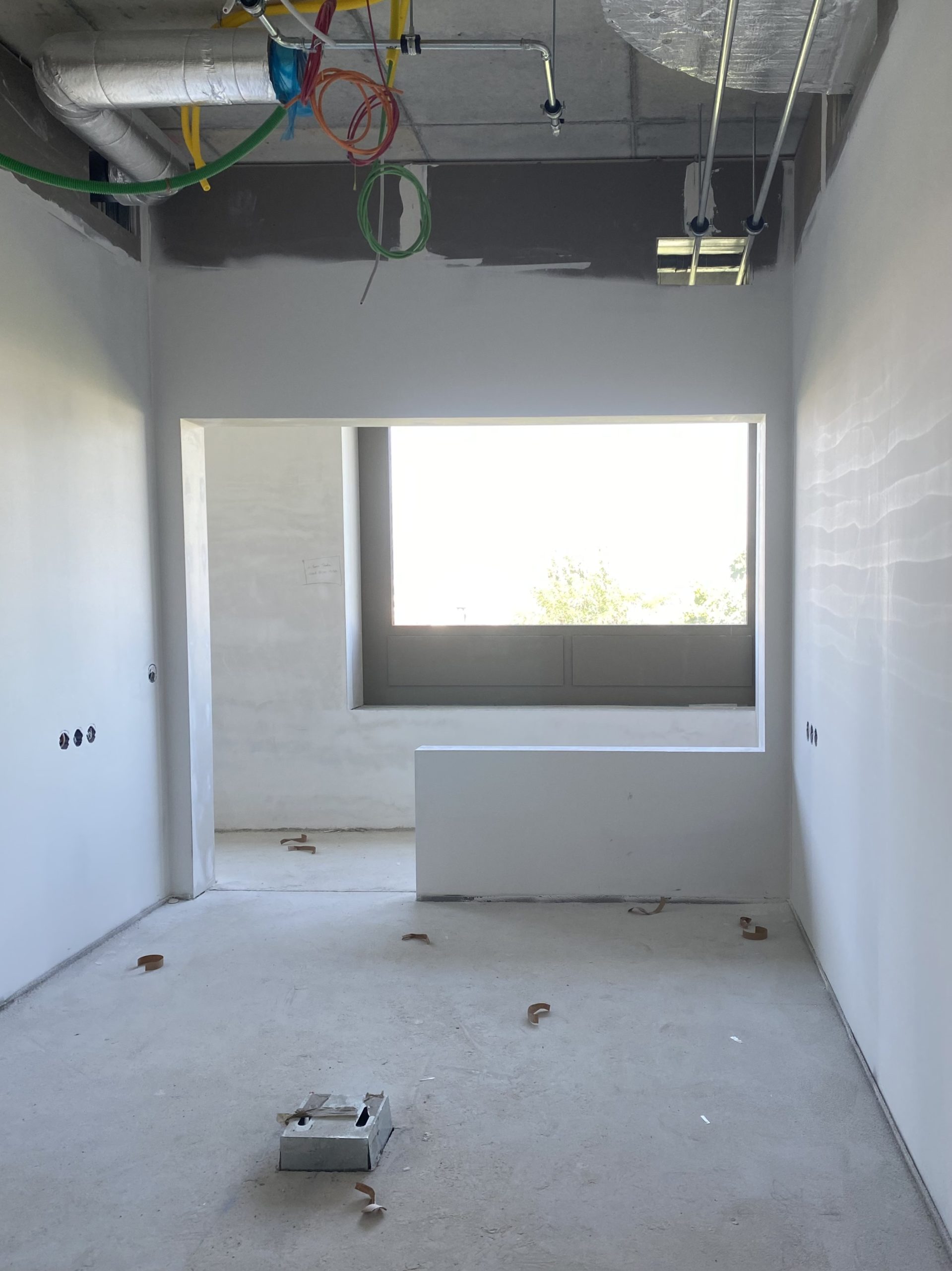 Les étages inférieurs sont dédiés aux blocs opératoires et à tous les services connexes, ainsi qu’aux importants équipements techniques. L’installation du monte-charge, de l’unité de stérilisation et des équipements d’imagerie sont des étapes distinctes. Le bâtiment est chauffé grâce à une pompe à chaleur air/eau.