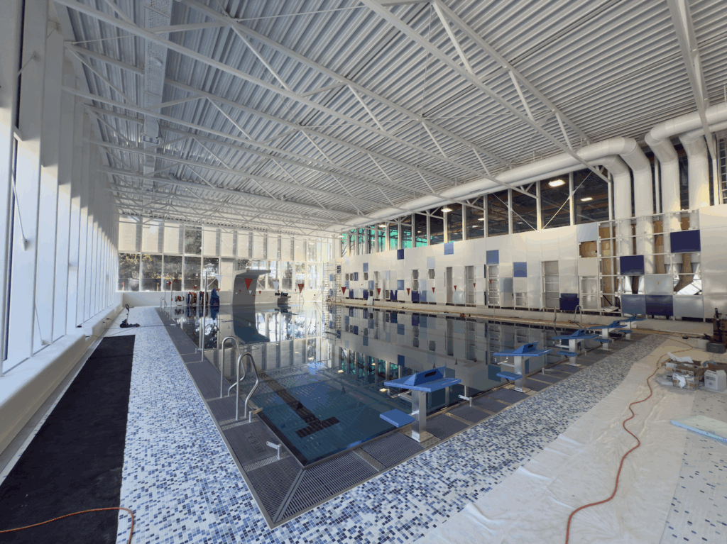 Le bassin de 25 mètres, chemisé intégralement en inox pour garantir une robustesse accrue face au temps, reflète un choix de matériaux durables et écologiques. La piscine est désormais équipée de lignes de débordement sur les quatre côtés et d’un nouveau plongeoir.