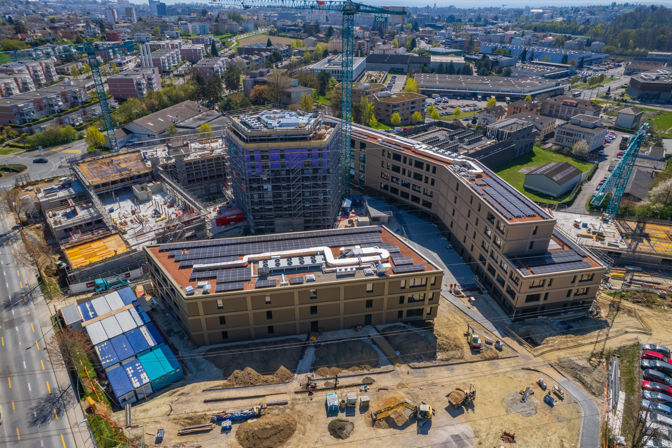 Au chapitre technique, notons que l’ensemble sera raccordé au réseau de chauffage à distance CriCAD et qu’une grande partie des toitures est équipée de panneaux solaires. Une petite production de froid est également nécessaire, notamment pour les salles informatiques.