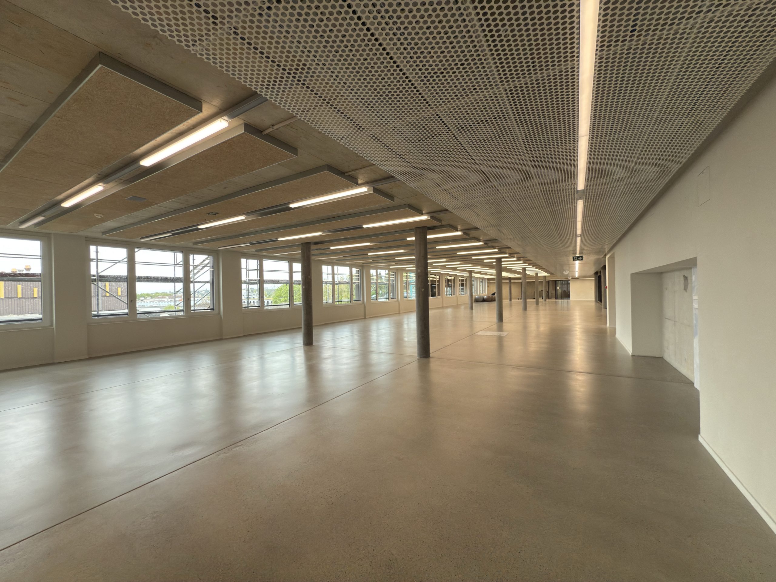 Le changement d’affectation à travaux initiés a bien sûr été l’un des défis majeurs au niveau conceptuel, notamment pour intégrer les nouveaux volumes des salles de sport avec une statique déjà définie ; des poutres précontraintes reprennent les efforts des niveaux supérieurs.