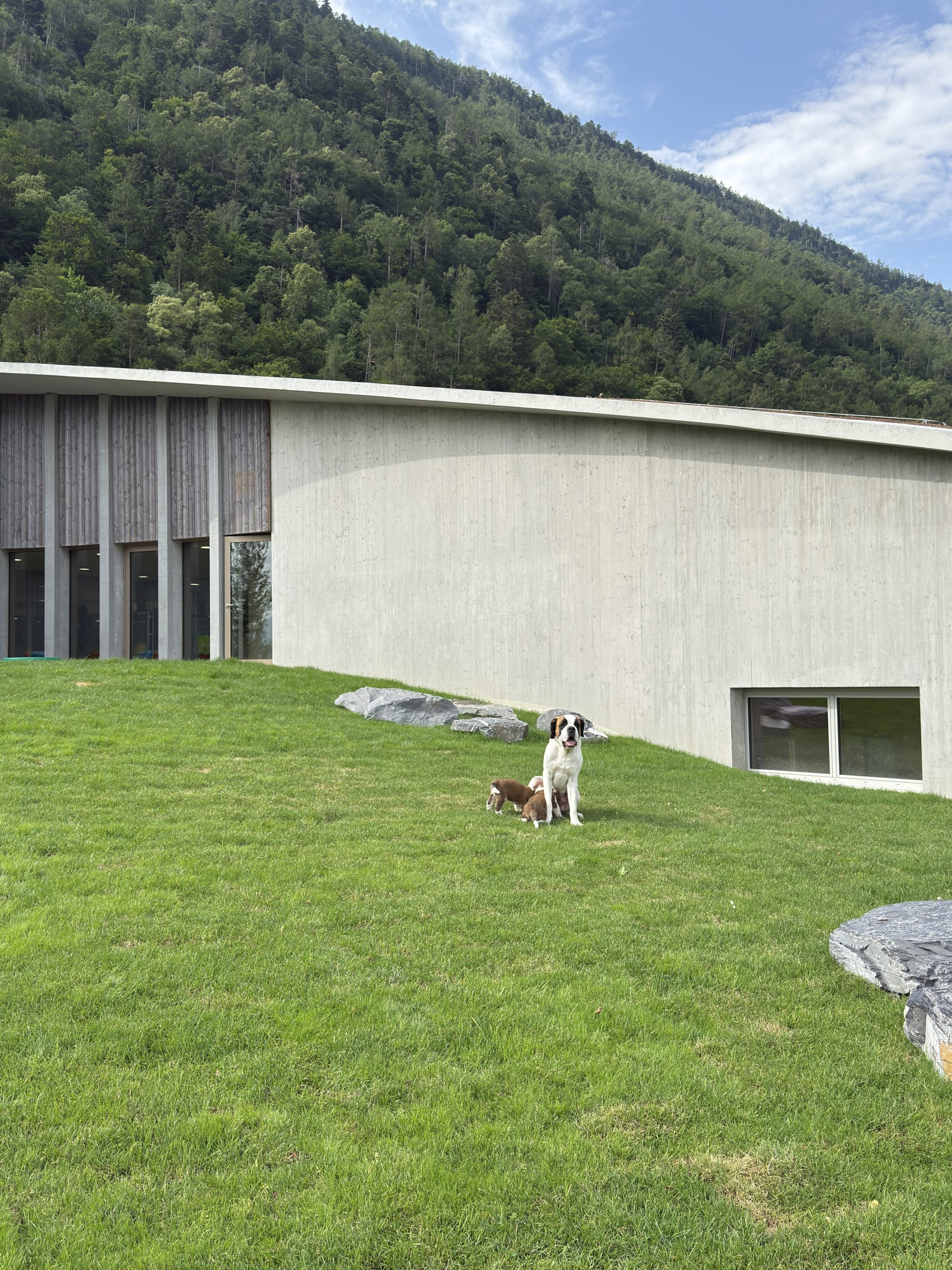 Le nouveau bâtiment est la vraie attraction du site. Le plan dessine une empreinte de chien stylisée. Chaque coussinet est un espace extérieur qui permet aux chiens de s’épanouir librement. À l’intérieur, le visiteur découvre cinq univers thématiques captivants : Barry Sauveteur, Barry Star, Barry Ami, Barry Chéri et Barry Joueur. Chacun peut se plonger de manière ludique et interactive dans l’histoire et les mythes qui entourent les Saint-Bernard, tout en découvrant ses caractéristiques uniques. Les visiteurs ont également l’opportunité d’observer ces chiens dans leur environnement naturel et d’assister de près aux soins qui leur sont prodigués au quotidien.