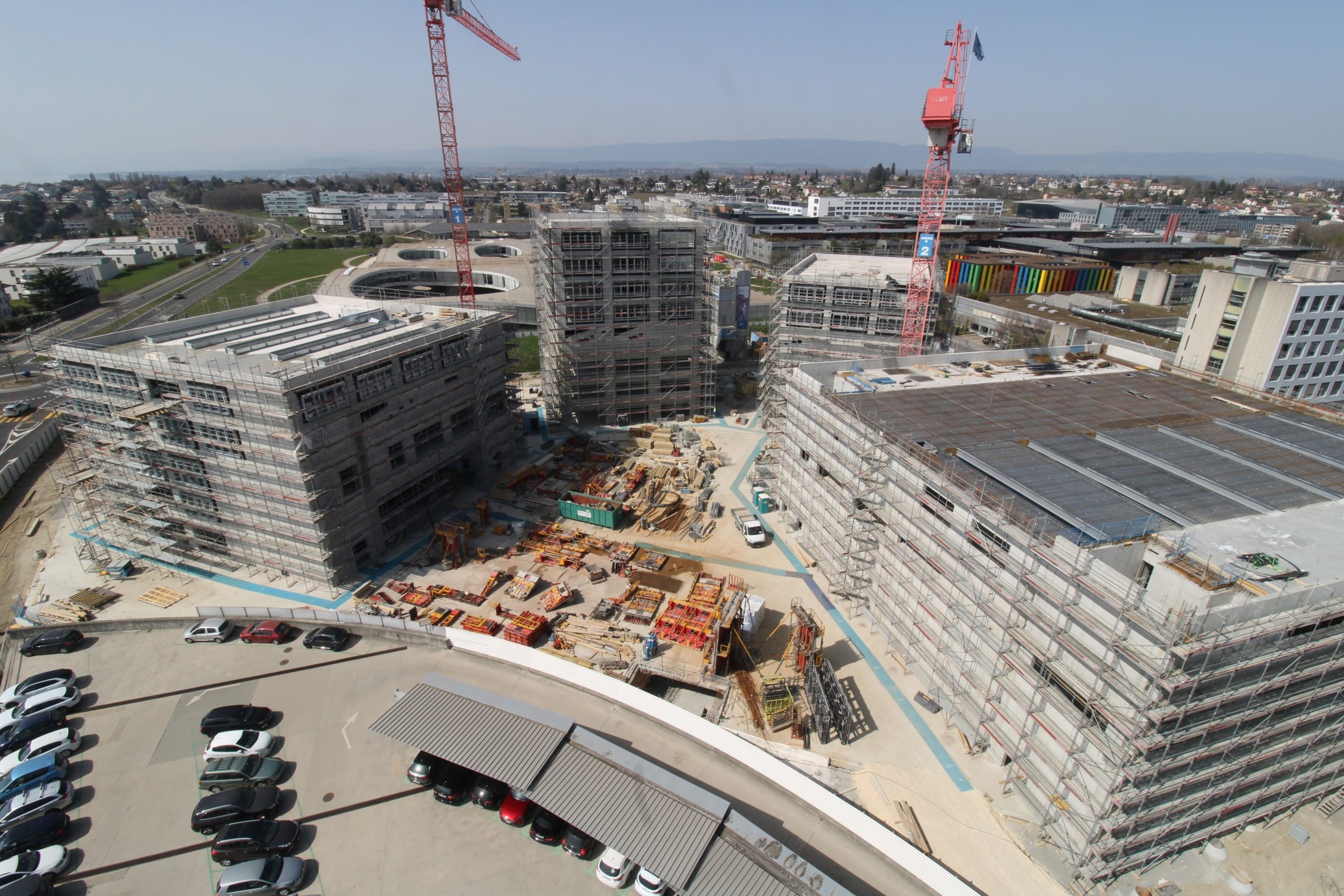 Le chantier débute en 2019 avec la démolition d’éléments présents sur la parcelle et une première phase de travaux préparatoires. L’accès existant au parking du RLC traverse la parcelle, une nouvelle rampe (qui sera au final utilisée pour les deux bâtiments) est donc créée latéralement. Un nouveau giratoire sur la route cantonale accompagne cette première mesure.