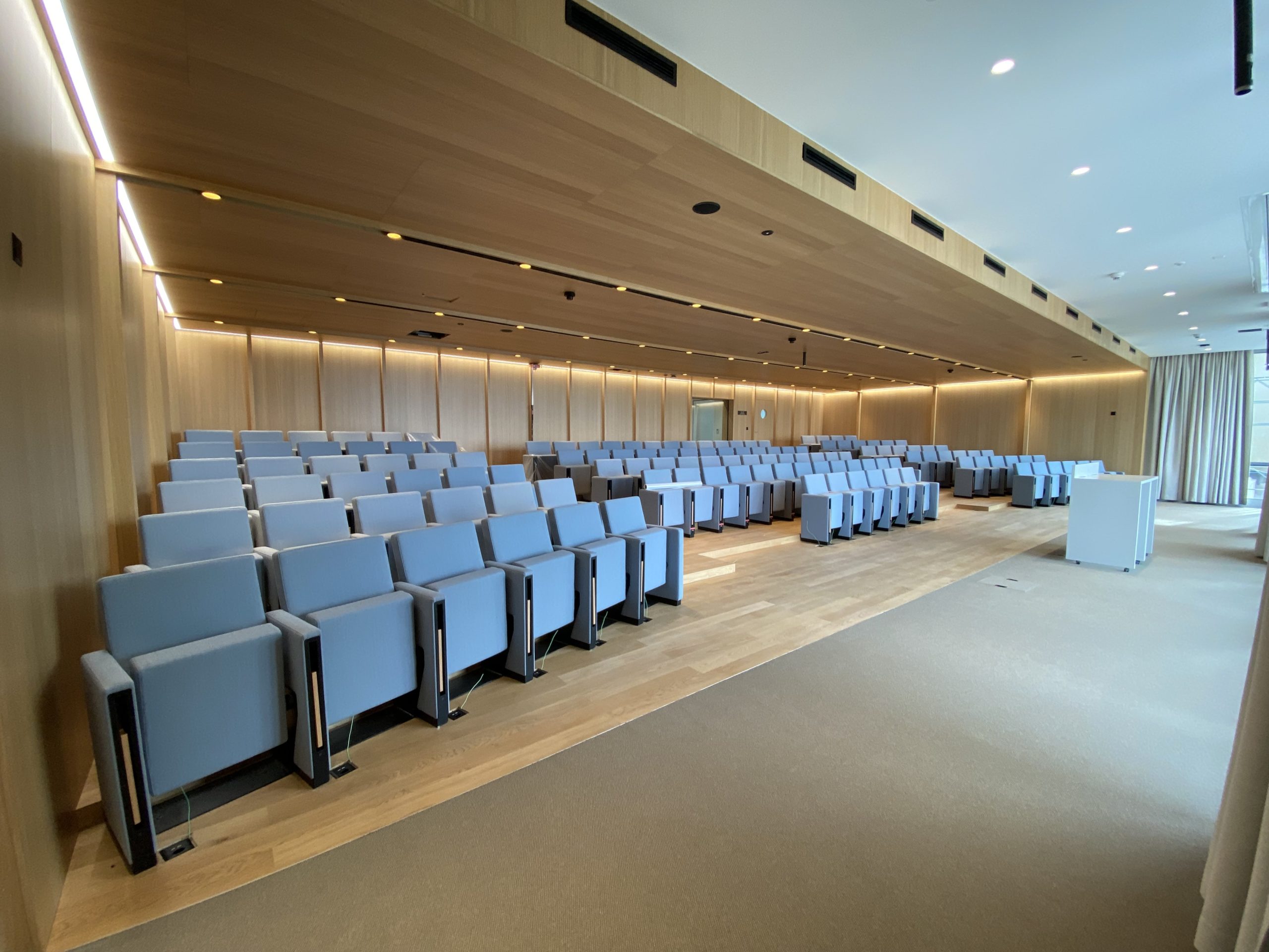 En comparaison avec les bâtiments voisins, le SE-C dispose d’un étage supplémentaire sans pour autant déroger au gabarit. Cette optimisation rend l’édifice plus compact, assurant à chaque espace intérieur une réelle proximité avec les façades; toutes les surfaces sont baignées de lumière naturelle. Ceci permet de libérer une large esplanade qui offre une respiration bienvenue dans un contexte bâti relativement dense.