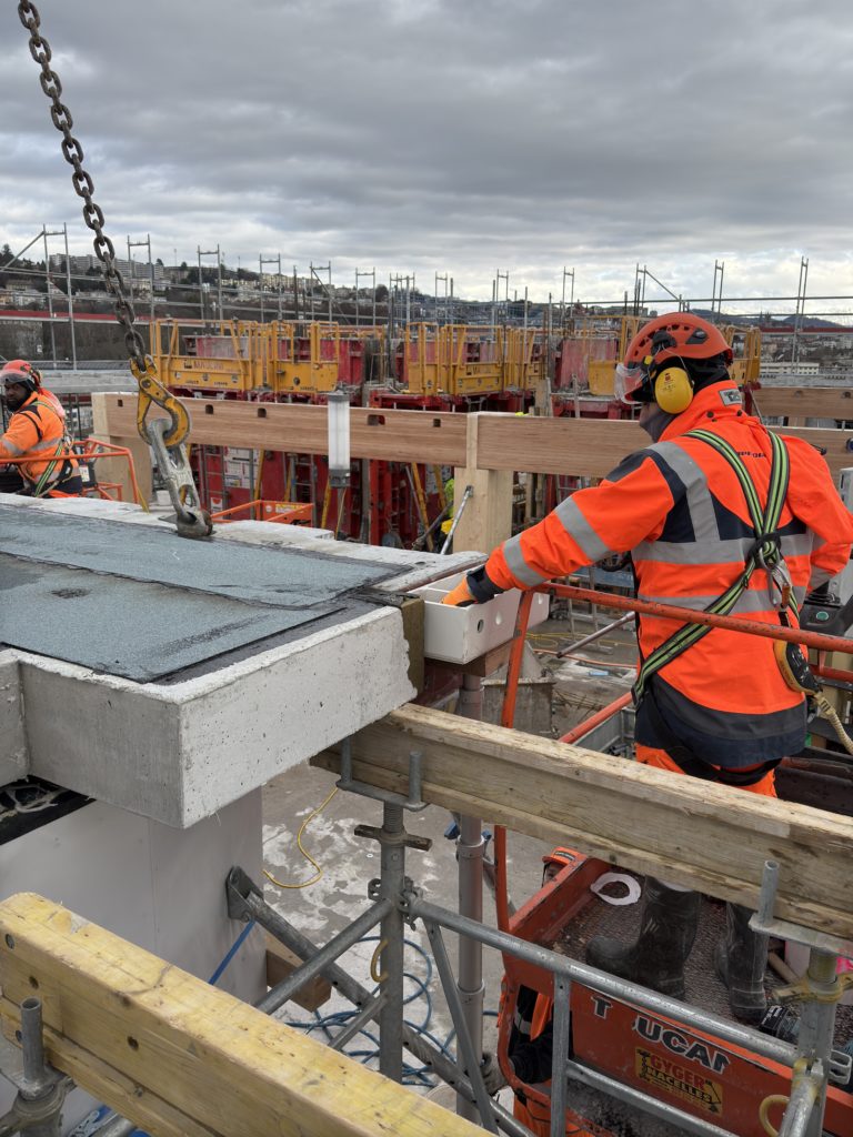 Le concept va encore plus loin avec la préfabrication des salles de bain comprenant 390 modules livrés et mis en place au fur à mesure de l’avancement. Développé en BIM, le projet vise un haut niveau de qualité et de précision. Les choix constructifs adoptés imposent une grande maîtrise du planning et une logistique irréprochable. Géré en méthode lean, le chantier est maîtrisé dans les moindres détails.