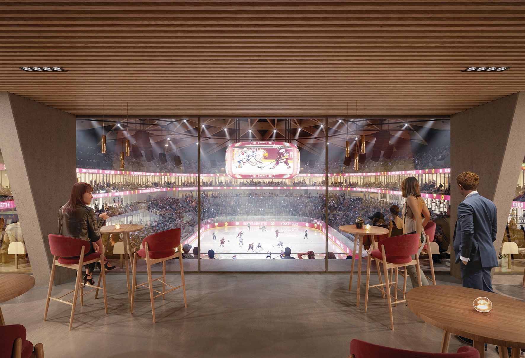 Les lignes sculpturales des façades du projet s’enroulent tels des rubans autour de la patinoire, créant un volume dynamique à l’identité forte pour ce projet d’envergure !
